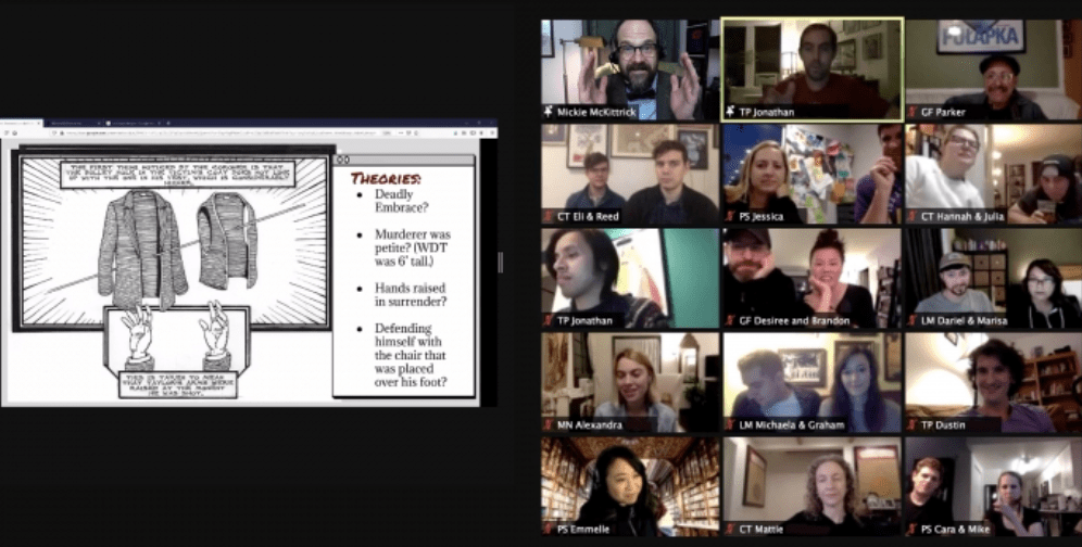 The newest Geffen Stayhouse production, Citizen Detective takes place via the Zoom video conferencing platform. Each performance is limited to a maximum of 24 participants, however the night I attended the interactive performance there were 31 participants logged in. Each ticket holders is a sleuth, trying to solve the unsolved true cold murder case of Hollywood legend, William Desmond Taylor.