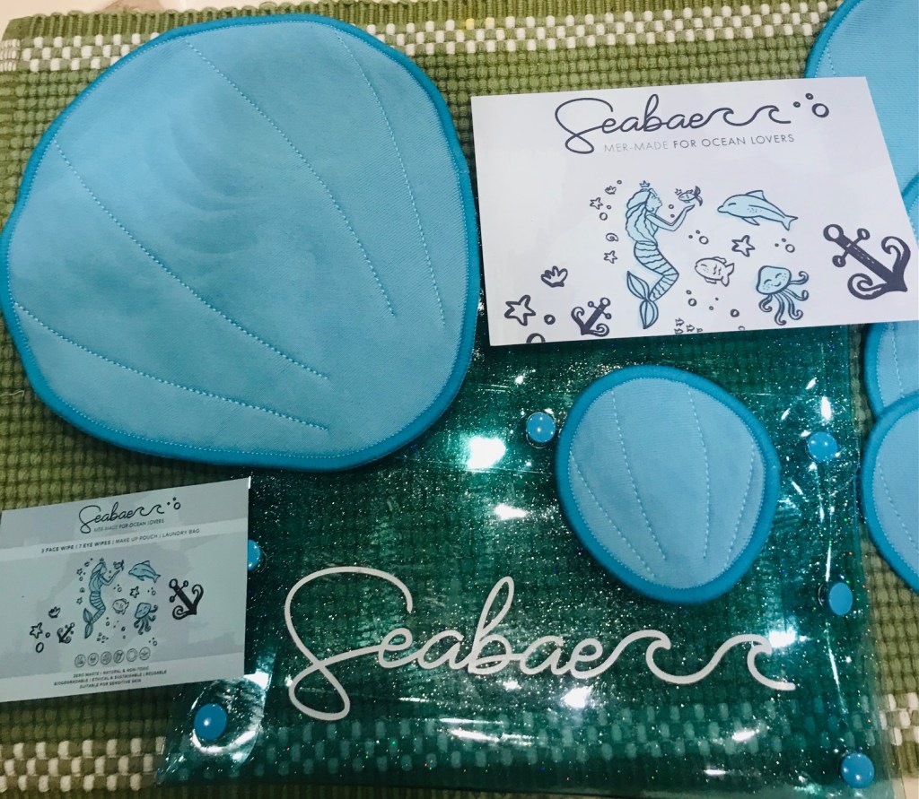5. Seabae is an eco-conscious beauty solutions brand for ocean lovers and the environmentally conscious. Seabae Wipes are the first of their kind makeup remover wipes made from ethically-sourced hemp cotton. Now there is zero waste, because they are reusable after more than 1000 washes. Not only are these biodegradable, but also esthetically pleasing shaped as a seashell with a shade of ocean blue Buy a Combo Pack that includes 3 face wipes, 7 eye wipes, a laundry bag to wash them in and a reusable Seabae Travel Pouch.
