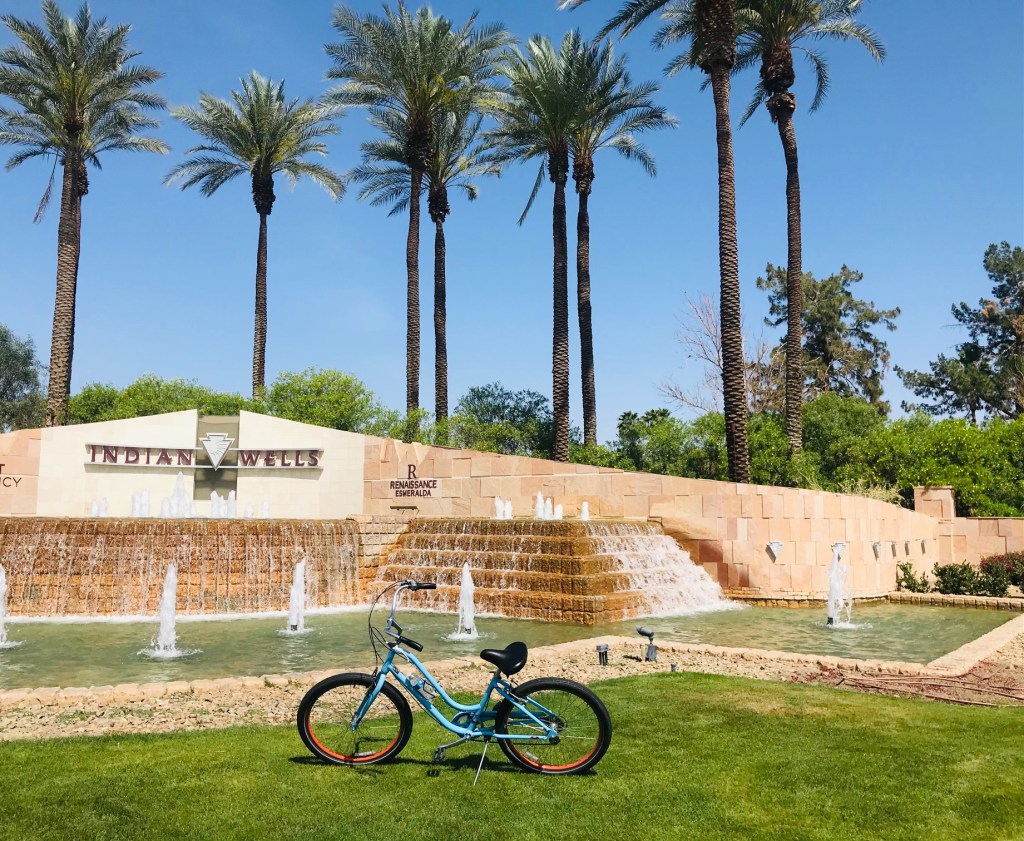 A fun way to see Indian Wells is by bicycle. Ask the front desk for a cruiser bike and map to follow a 4-mile loop along paved bike lanes, citrus trees and some of the most expensive real estate in the Coachella Valley.