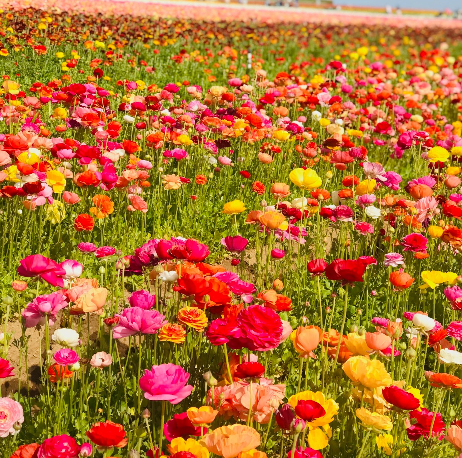 Last year at this time, The Flower Fields at Carlsbad Ranch had to close and lock it’s entrance gate due to the pandemic. It was one of the only times in over sixty years, that the public couldn’t walk next to rows of blooming colorful Giant Tecolote Ranunculus flowers. This annual event lasts for only six to eight weeks, usually starting in early March through early May.