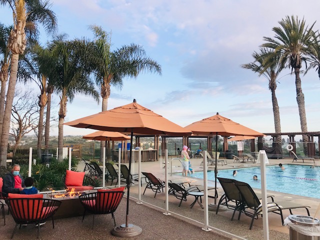 Amenities at the property include two resort size pools, a family splash pad, and fitness center. Paved walking pathways around the resort provide views of the city, Flower Fields and ocean.