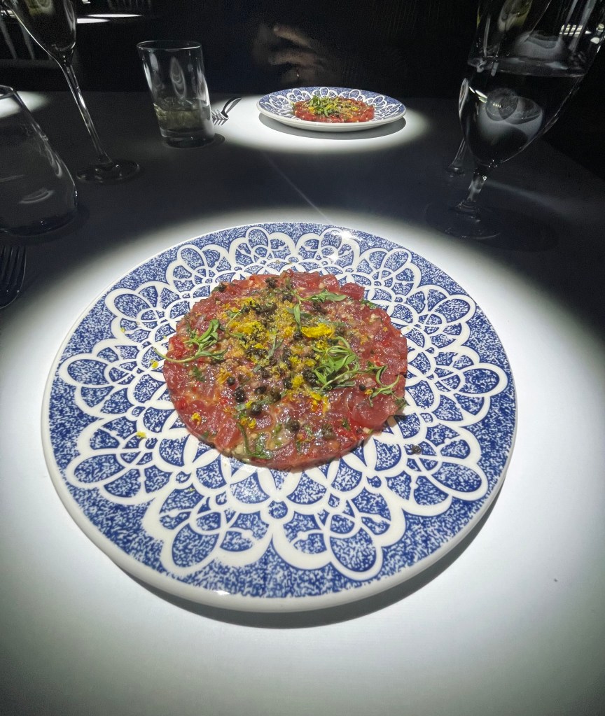 The tuna tartare is spectacular at La Monde’s TableMation whimsical dining experience. (photo by Jill Weinlein)