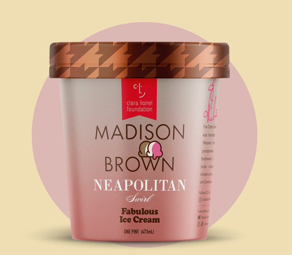 When you make a purchase of a Neapolitan pint, 100% of the proceeds will go to the Rihanna’s Clara Lionel Foundation (CLF), a nonprofit organization founded in 2012. Named after and to honor her grandparents, Clara and Lionel Braithwaite, the funds provide groundbreaking education and emergency preparedness and response programs around the world. In March 2020, the fund donated $5 million toward COVID-19 response efforts. CLF supports climate justice initiatives in the Caribbean and in the United States to help communities prepare for and withstand natural disasters.