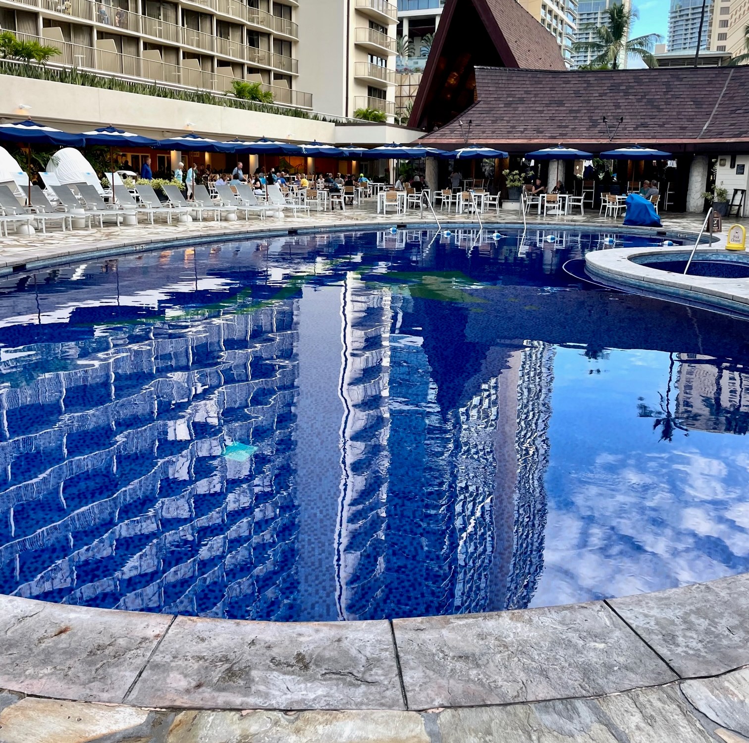 A beautiful mosaic tile pool, plus three jetted hot whirlpools, are near the fully reimagined Kani Ka Pila Grille. Nearby is the stage for live Hawaiian music and dance.