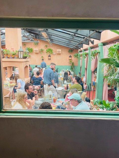Beyond the bar are additional interior dining areas, and a stunning light and bright courtyard. Seated at a white wrought iron and glass table, I propped myself against a colorful pillow.