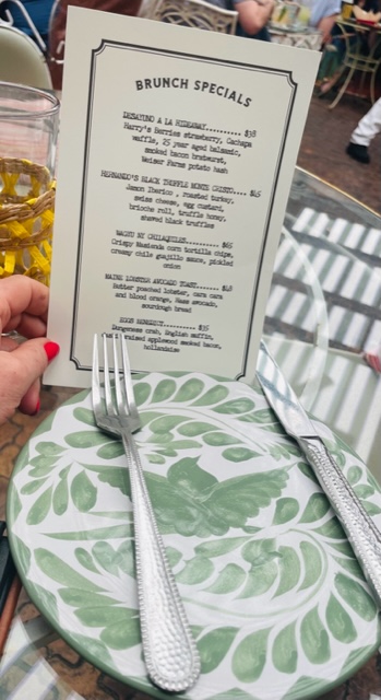 Our server offered some recommendations on the Brunch menu and encouraged us to also look at the “Uno. Dos. Tres” menu. A choice of eight savory items are offered in the “Uno” section, and six appealing vegetarian, pescatarian and carnivore items are under “Dos.” “Tres” provides four selections of sweet treats.