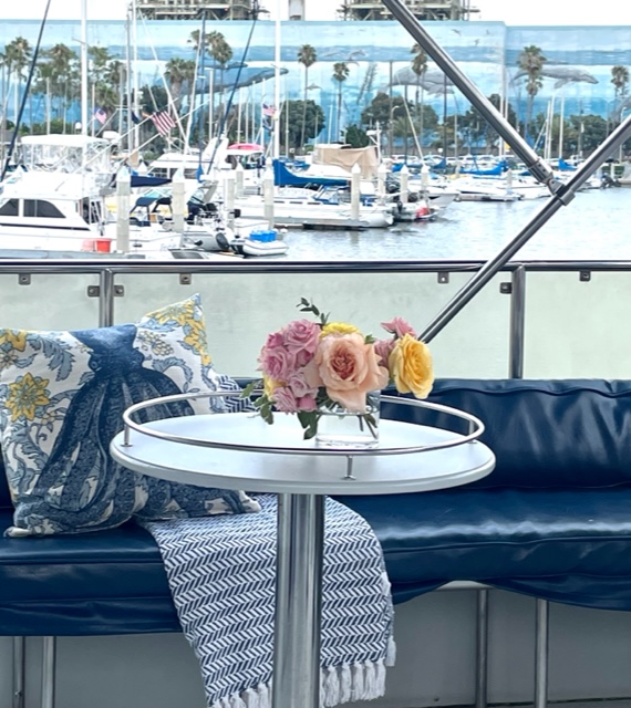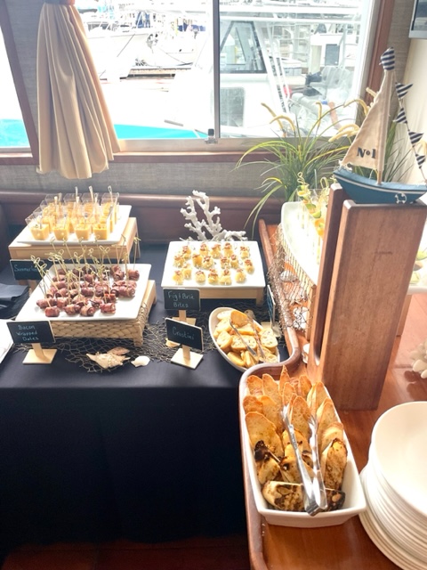 Parked right in front of The Portofino Hotel and Marina, guests can customize a food and beverage menu for their celebratory event onboard.