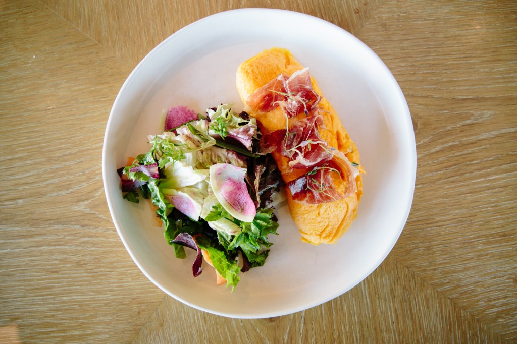 Located on the 10th floor, the modern design restaurant offers a lovely garden terrace overlooking the Walt Disney Concert Hall and Music Center LA. Inside the bright dining room are windows everywhere you look, even into Chen’s kitchen.