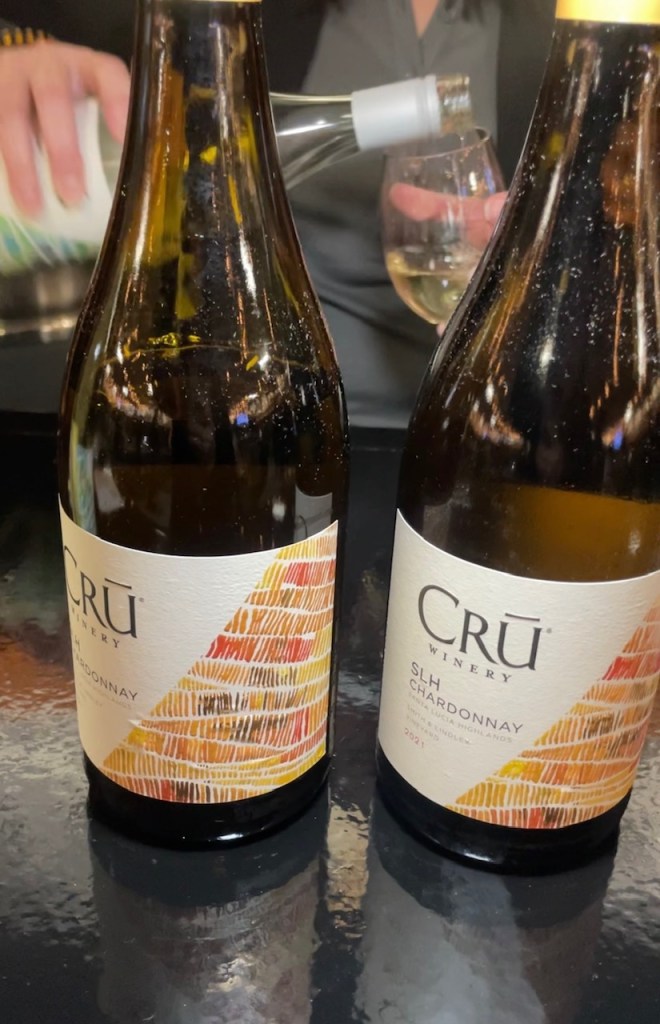 CRU WINERY is a Central California winery that featured three wines that include a 2022 Albarino, 2021 SLH Chardonnay and a 2021 SLH Pinot Noir.