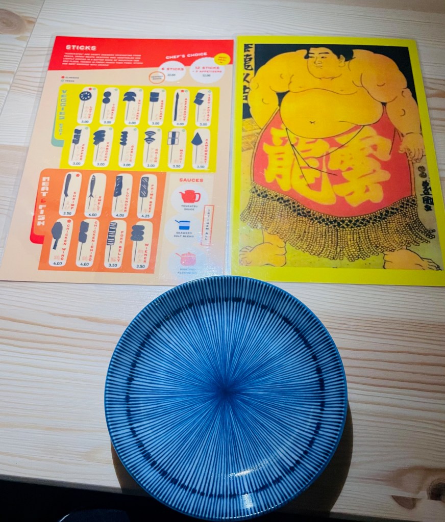 Diners can start with a curated Japanese beer, whiskey, sake, shochu, highball cocktail or mocktail while looking over the paper menu. There are boxes to check off featuring over 20 different vegetable and protein skewers you would like to try, Chef Schlosser also has his signature wagyu corned beef and chili-spiced chilled tofu on them menu.