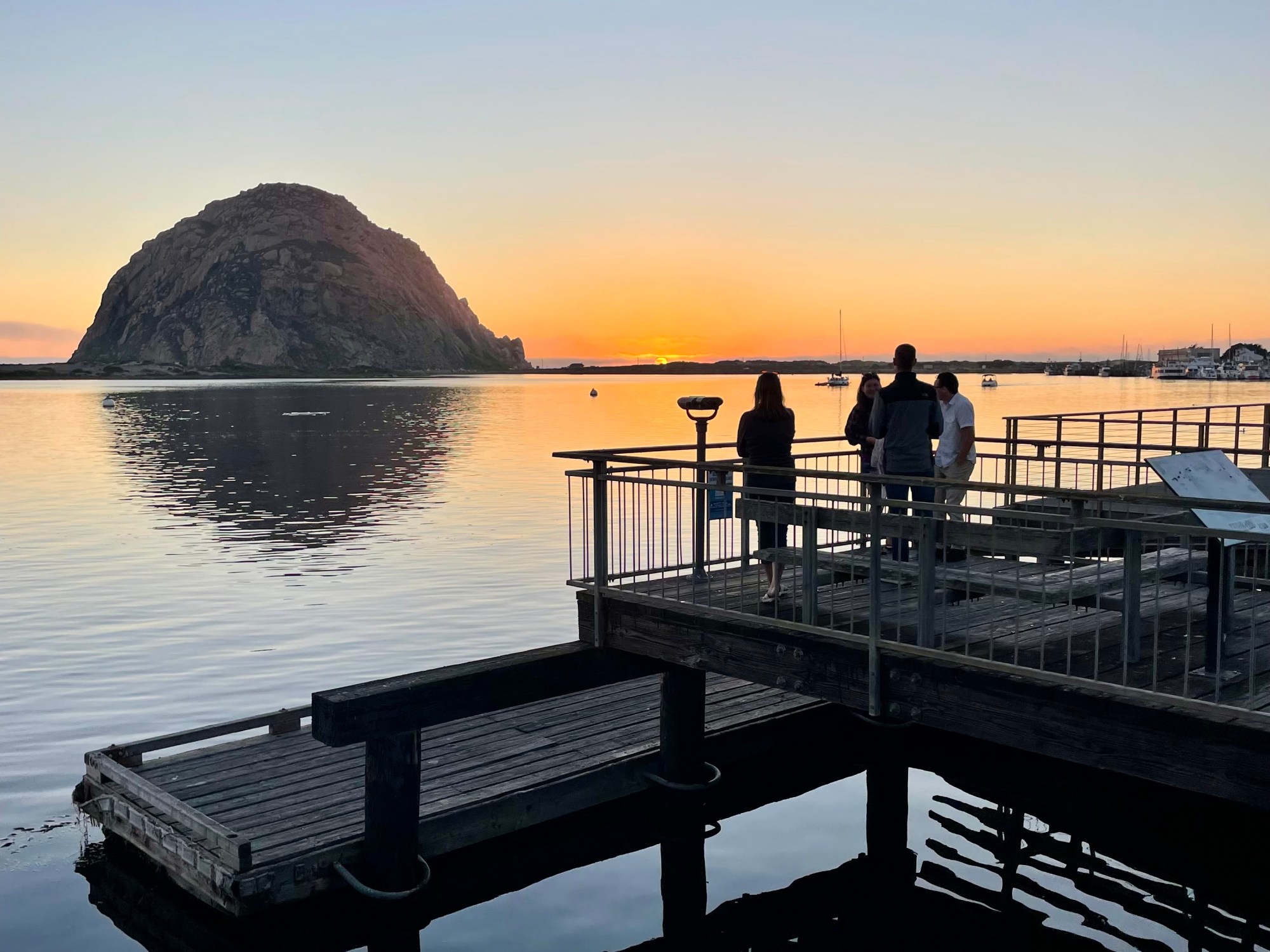 In the evening when the sun sets and glows above the Pacific Ocean, the views are stunning. The only sounds are barking from the local seals on a nearby dock.