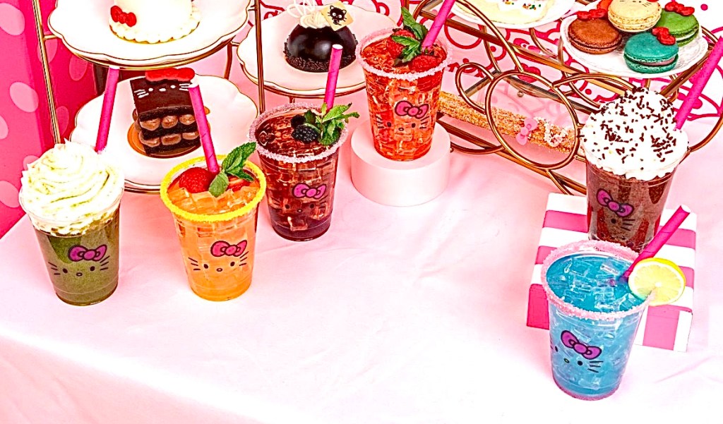 · Hello Kitty® Strawberry Green Iced Tea – Strawberry green tea, pink sugar rim with strawberries and mint