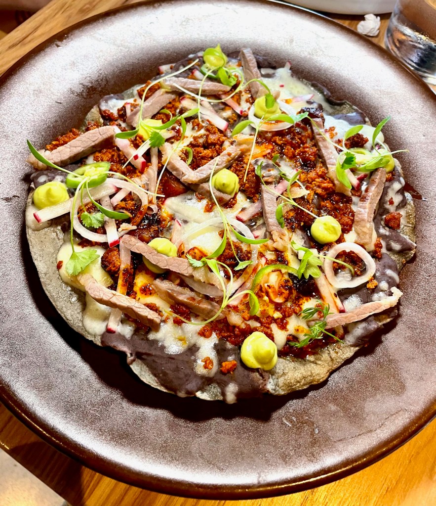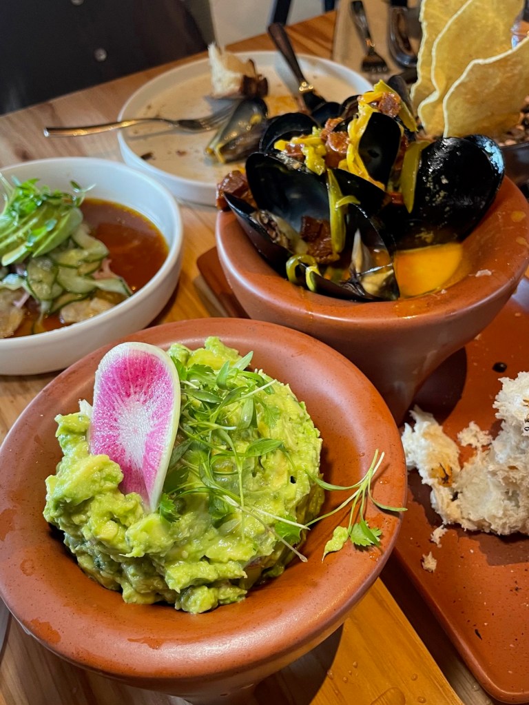Be sure to order the creamy Haas avocados blended with tomatoes, cilantro, onion, lime, and serrano chiles. It’s adorned with a sliced watermelon radish and served with delightfully crunchy tortilla chips.