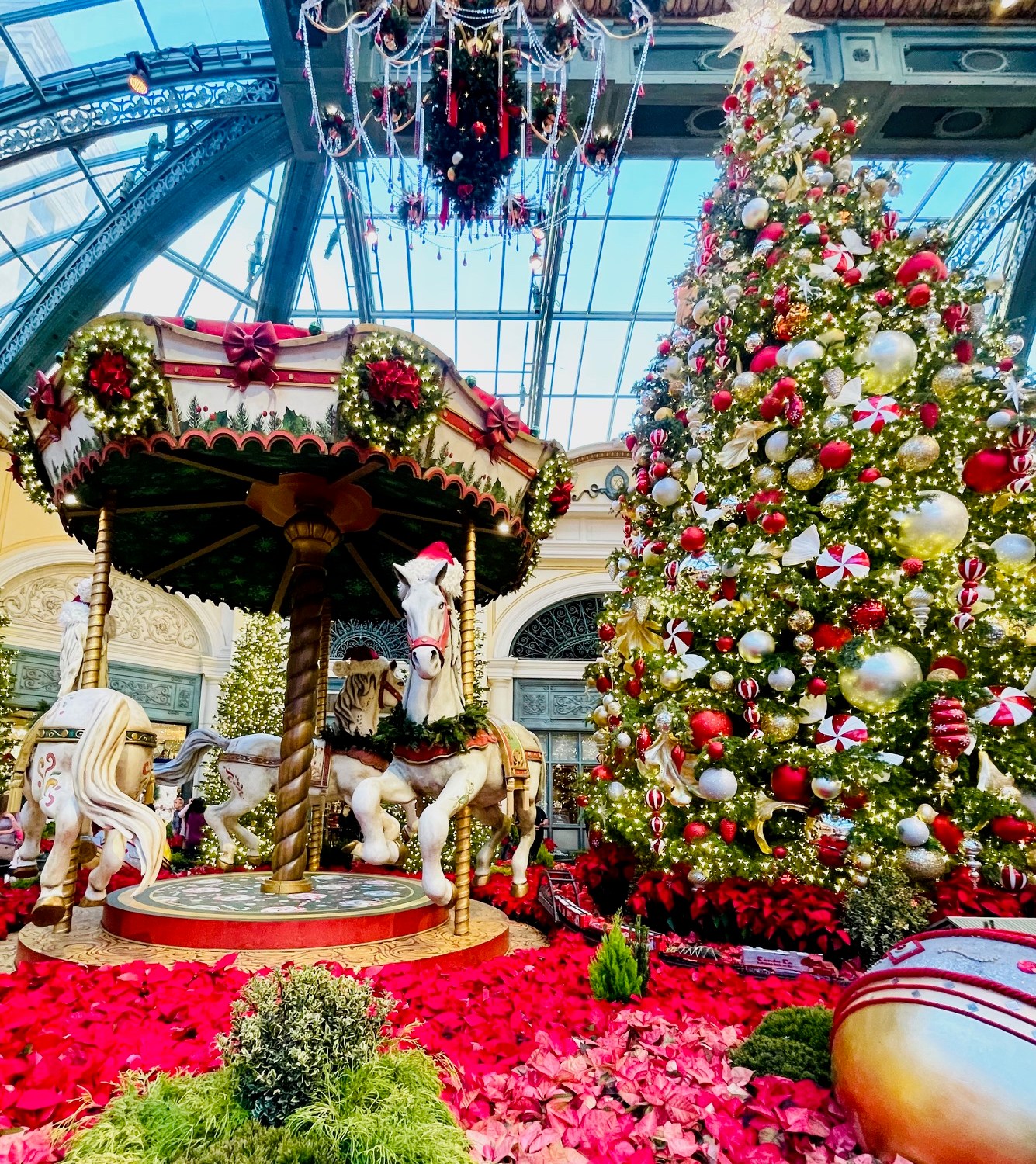 Imagined by designer Ed Libby and brought to life by Bellagio’s Horticulture team, the Conservatory displays breathtaking floral arrangements and festive décor. The enchanting story transports guests into a beloved holiday dream. .