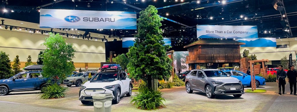 Subaru is offering attendees ride and drive experiences, a rope bridge structure that visitors will pass under and their Wilderness Theater that will transport visitors to different outdoor environments.