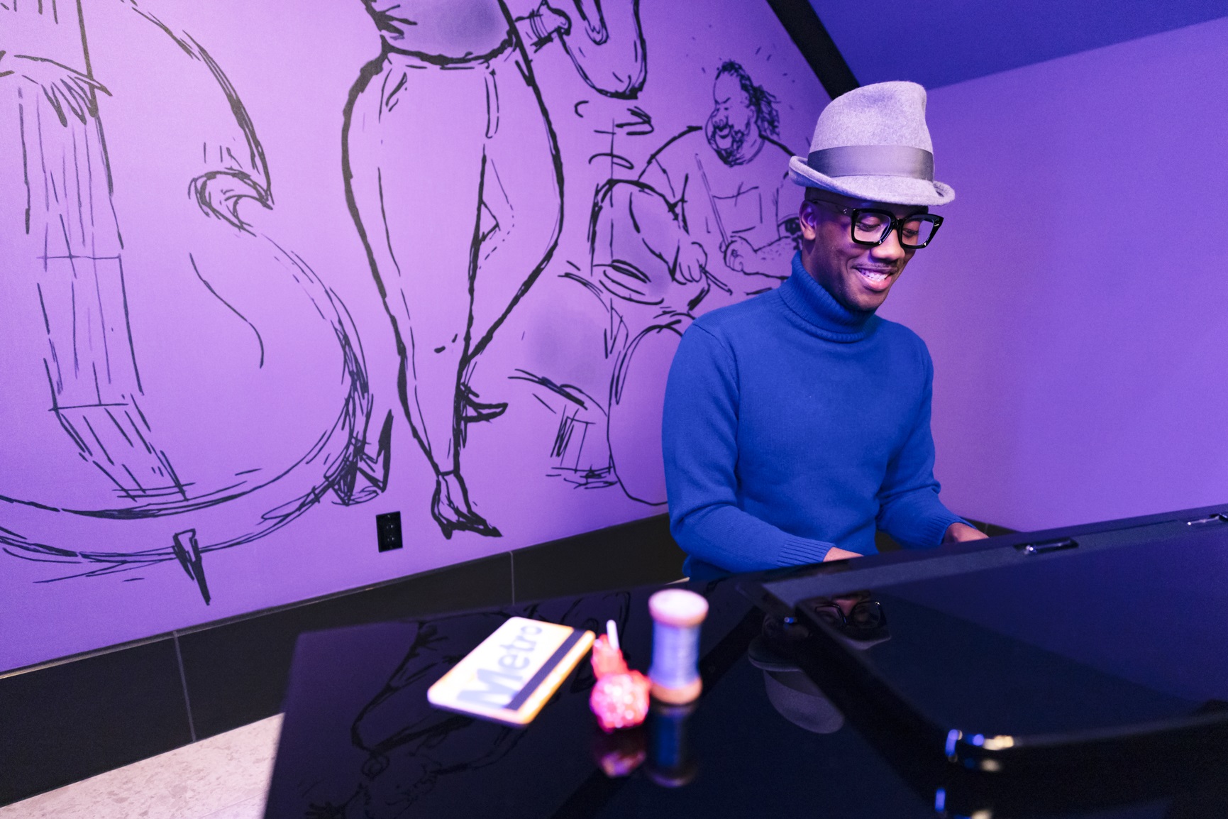 At select times in the afternoon and evening, Joe Gardner from Pixar Animation Studios hit movie “Soul” will play jazz tunes on the piano. Guests staying at Pixar Place Hotel at Disneyland Resort will hear Joe while passing through the lobby next to deep purple walls and drawings of jazz musicians and counselors from “The Great Before.”