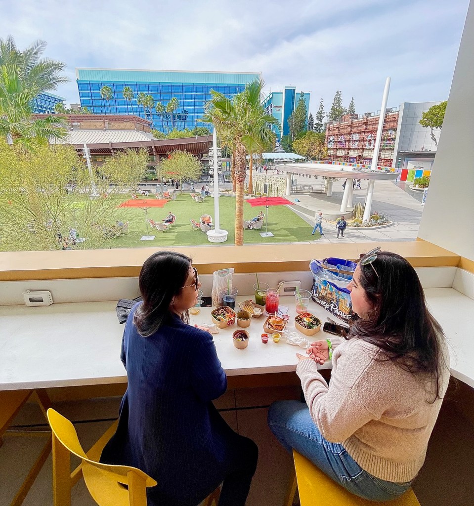 Order and take food up to the second floor to VISTA Parkside Market for views of the Downtown Disney LIVE! stage. It’s a wonderful spot to sip festive cocktails, mocktails, beer and wine with delectable soulful fare from GG’s Chicken Shop, Sip & Sonder, and Seoul Sister.