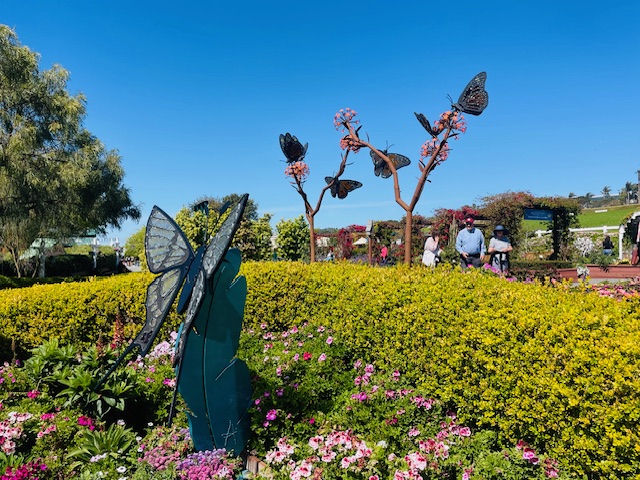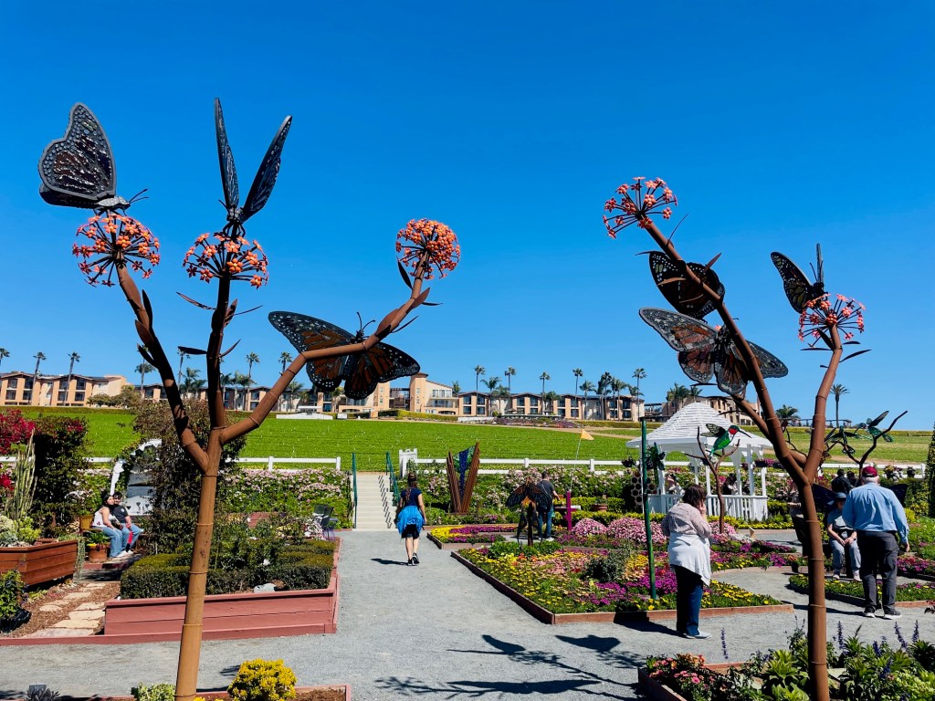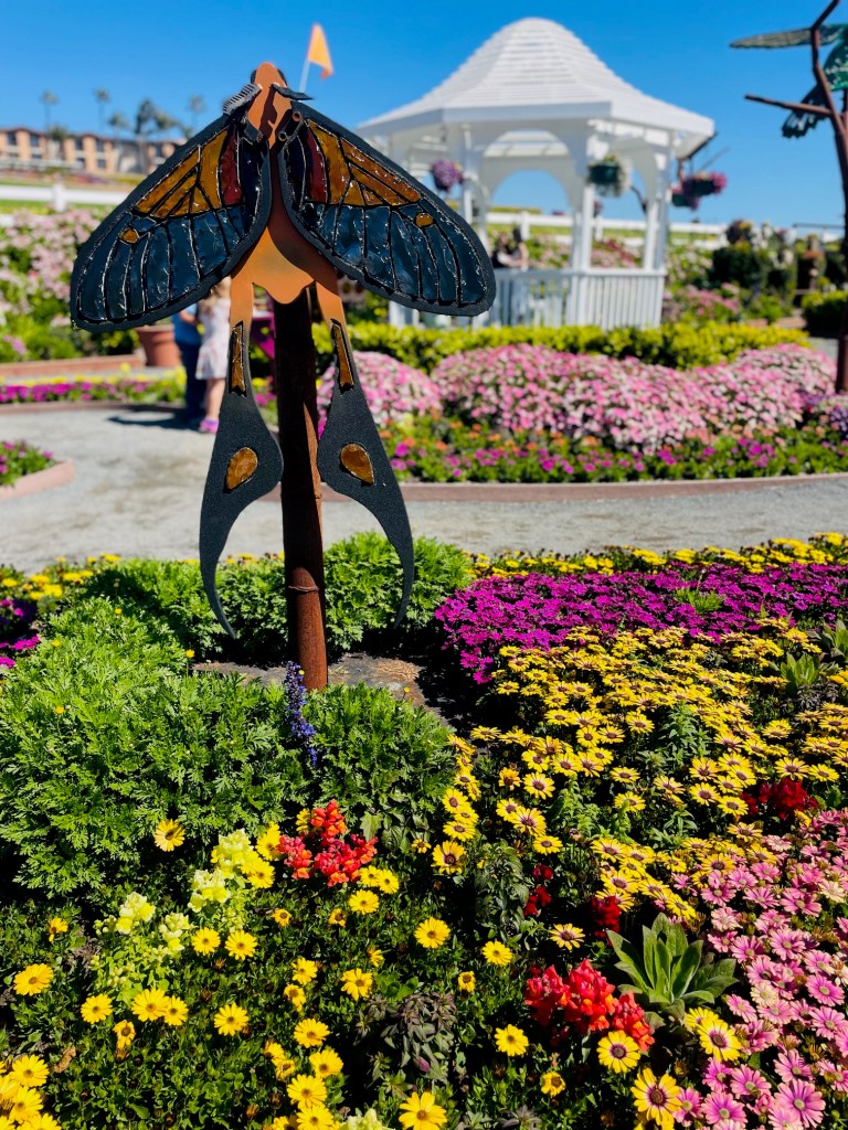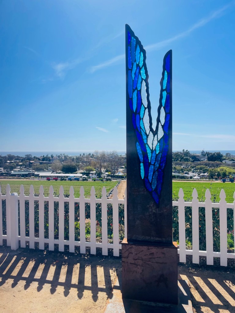 This year The Flower Fields at Carlsbad Ranch is thrilled to welcome its very first traveling art exhibit by the talented artist, Alex Heveri. Her “Glass in Flight” exhibit displays 38 glass and steel sculptures in flower gardens and out in the fields. Majestic Monarch butterflies, dragonflies, a bee at a hive and different insects made of steel and colored glass enhance guests’ experiences.