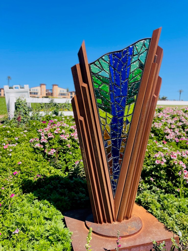The water lily sculpture is an appreciation of nature. Its pure abstract and color make the piece just what she wanted. ‘Sometimes it takes two years to get the right color of glass from the only supplier in Indiana,’ said Heveri. ‘It’s worth the wait to get the colors I want.’