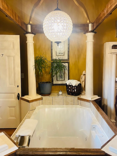 3. Cozy and Elegant Rooms: The rooms are designed to offer a comfortable and elegant stay, each with its unique character. Many rooms feature antique furniture, luxurious bedding, and private bathroom, giving guests a blend of old-world charm and modern amenities. Staying in the Williams Suite I enjoyed the large soaking whirlpool in the middle of the large room. There is a sitting area with an electric fireplace, separate bathroom with stand alone shower.