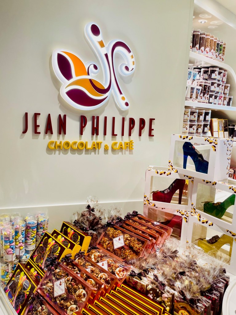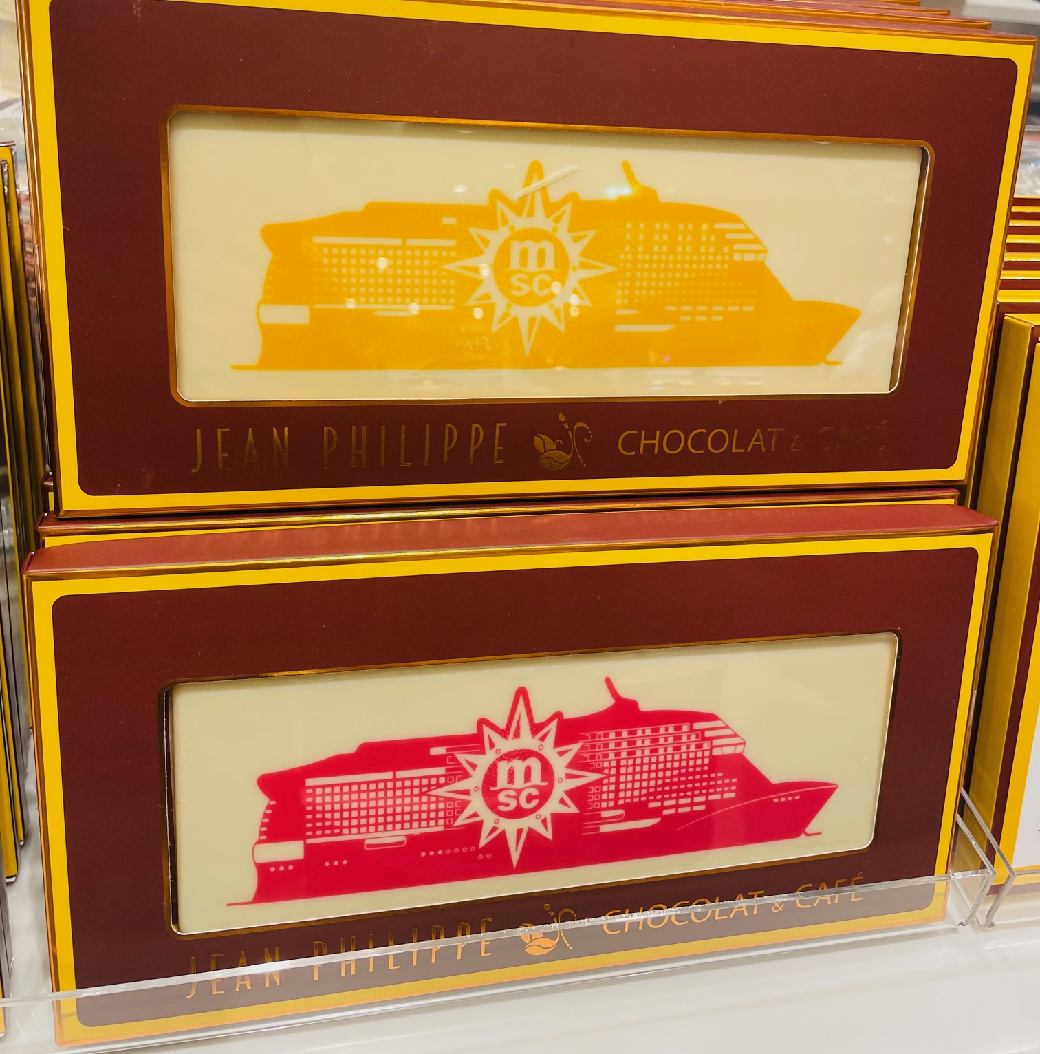 Each Jean Philippe Chocolat & Café features an open kitchen, allowing guests to watch chocolatiers create masterpieces. On the MSC World America, in the center of the shop there is a chocolate Statue of Liberty in a celebratory breakdancing pose.