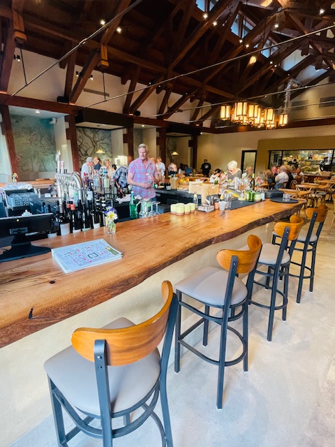 Walking up to the 7,800 square foot restaurant, one immediately notices the indoor/outdoor bar crafted by local artisan William Stranger. Made from fallen trees reclaimed from the Gardens, its eye-catching top is already a popular spot for those to enjoy a cocktail or beverage after visiting the gardens.